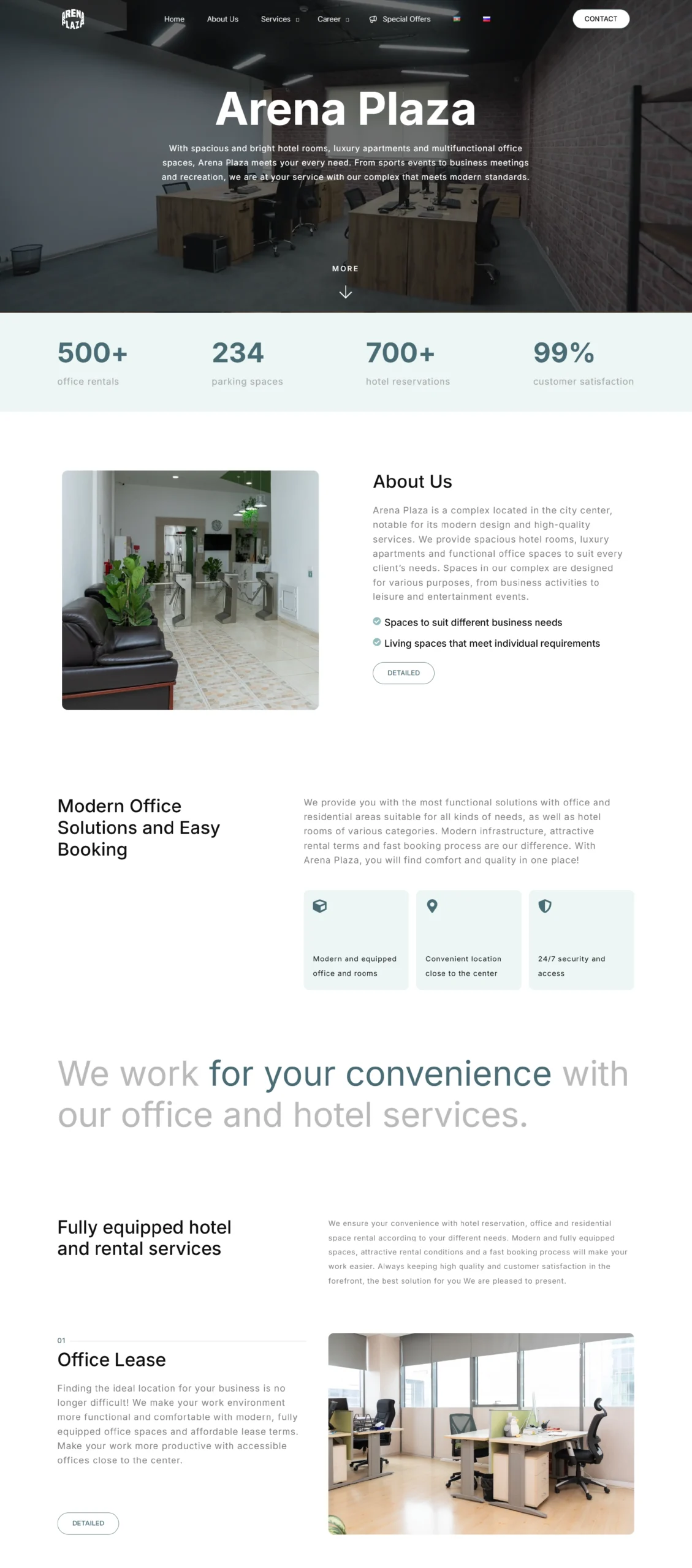 A professional and highly functional website was developed for Arena Plaza, supporting the solid image of a complex that unites a hotel, luxury apartments, and office spaces.
