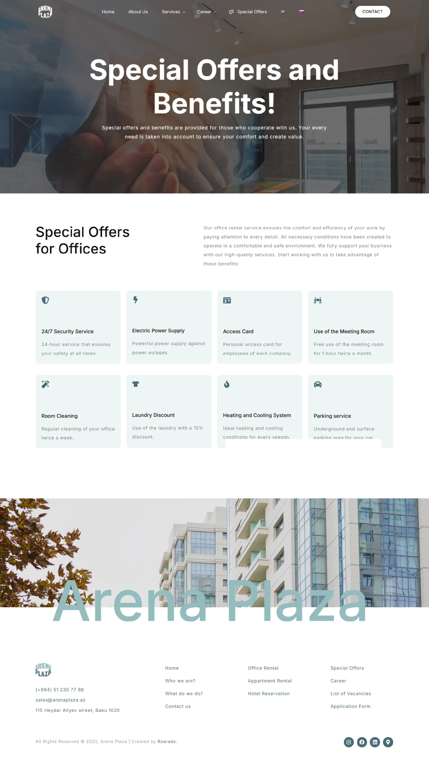 Arena Plaza is a multifunctional complex located in central Baku, which combines high-quality services with contemporary design. It encompasses premium hotel rooms, luxury apartments, and functional business spaces, offering customers high standards across three core areas: business, residential, and leisure.