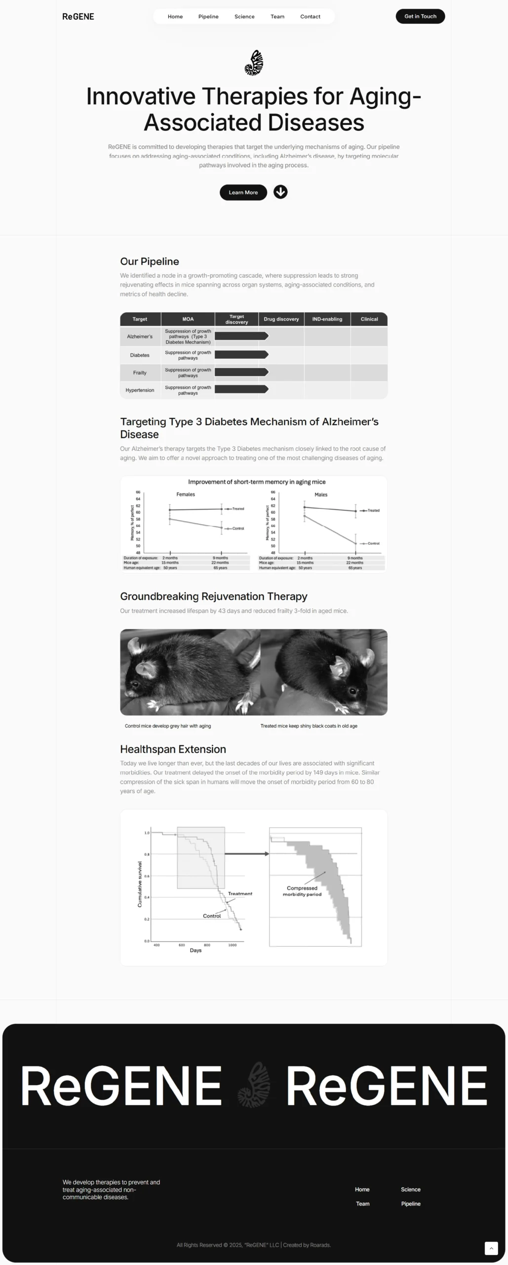 ReGENE is an innovative biotechnology company focused on developing therapies that target the underlying mechanisms of aging-associated diseases. By synthesizing evolutionary biology and molecular sciences, the company is pioneering next-generation treatments aimed at extending longevity and improving the quality of healthspan.